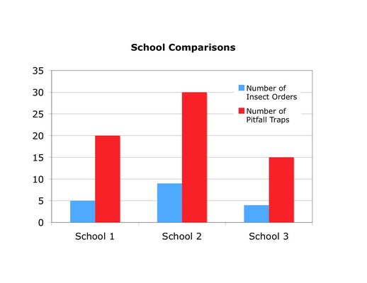 Finally, we would like you to be able to compare the arthropods in your schoolyard with those of other schoolyards across Tucson. To do so you must add your data to the schoolyard comparisons spreadsheet stored on Google Docs. Below is an example using imaginary data.